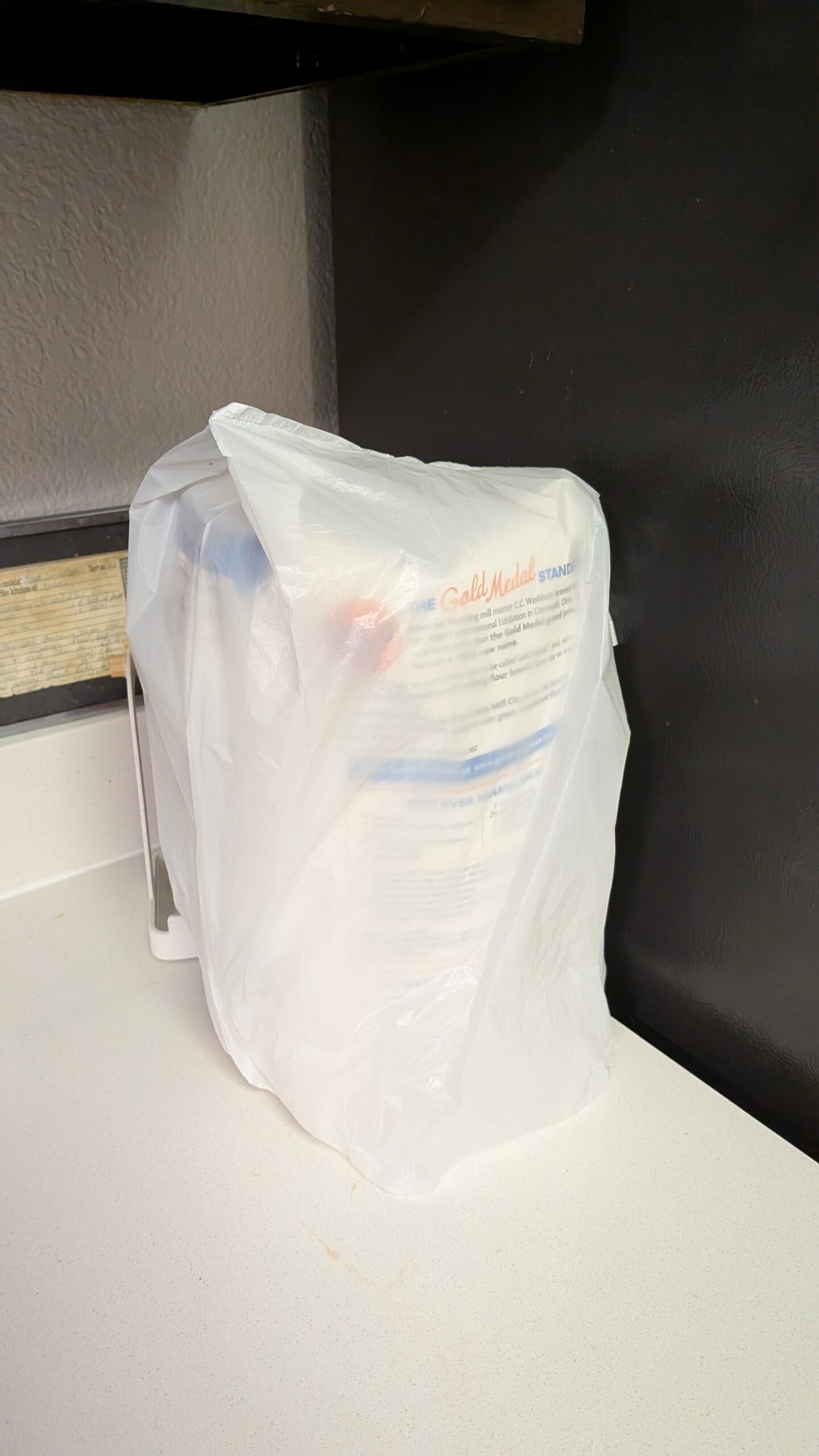 One happy addition to my starter process is that I found a very inexpensive 10lbs bag of flour at the store today ($2!). I’m skeptical about why it was so cheap, so I’m leaving it somewhat sealed away from my other food at the moment in case there’s flour weevils. But I think I’m just being paranoid – and this saves me from using the expensive King Arthur flour for feeding my starter.